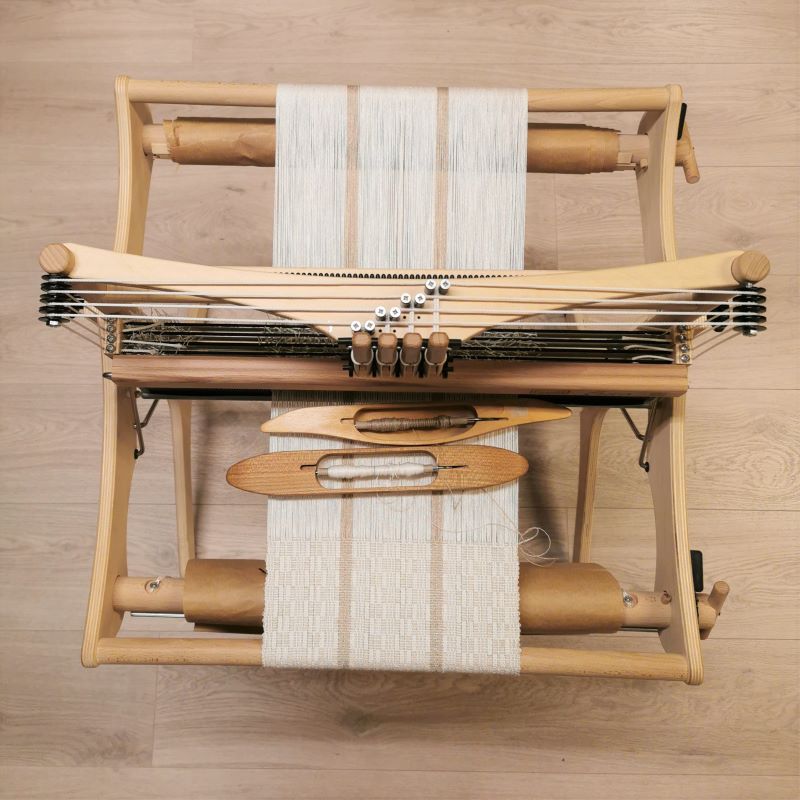 Erica er ein plasseffektiv og hendig bordvev med fire skaft. Dette er verkeleg ein allsidig vev med stort potensiale. Vevbreidda på 50 cm gjer at ein kan veve alt frå handkle til skjerf, puter, pledd og vesker på denne perla. Veven blir levert med 200 hovlar, vevskei 40/10 og integrert sveipekam. Veven er samanleggbar og er dermed lett å ta med seg.